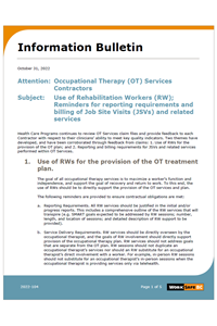 Use of Rehabilitation Workers (RW); Reminders for reporting requirements and billing of Job Site Visits (JSVs) and related services (October 31, 2022)