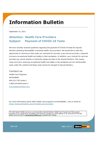 Payment of COVID-19 Tests (September 13, 2021)