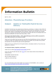 Update on Telehealth/Hybrid Service Delivery (April 21, 2022)
