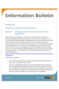 Physiotherapy Providers - Changes to the Physiotherapy Services Agreement (January 22, 2016)