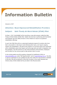 Safe Timely At-Work Rehab (STAR) Pilot (January 6, 2017)