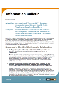 Survey Results - Resources to address challenges to collaboration between OT Services Contractors and MH Treatment Services Providers (November 4, 2022)