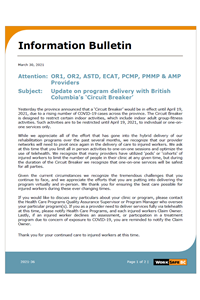 Update on program delivery with British Columbia's 'Circuit Breaker' (March 30, 2021)