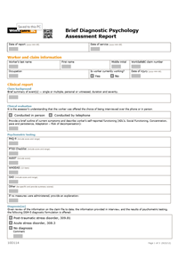 Brief Diagnostic Psychology Assessment Report (Form 10D114)