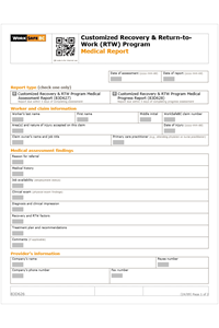 Customized Recovery RTW Program — Medical Report (Form 83D626)