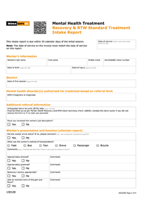 Special Care Services, Mental Health Claims Unit, Psychology Services, Health Care Services - Mental Health Treatment Recovery and RTW Standard Tx Intake Report