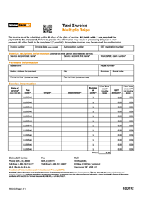 Taxi Invoice - Multiple Trips (Form 83D192)