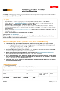 Vendor Application Form for Foot Care Services (Form 19D200)