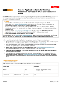 Vendor Application Form for Tinnitus Treatment Services in B.C.'s Underserviced Areas (Form 19D203)