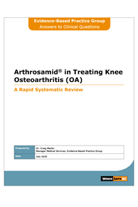 To determine whether there is any evidence to support the efficacy/effectiveness of Arthrosamid® in treating knee osteoarthritis (OA) and if there is any evidence on its efficacy/effectiveness, at what stage of knee osteoarthritis that Arthrosamid® is the most effective?