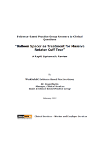 To determine whether there is any evidence to support the efficacy and/or effectiveness of balloon spacer as treatment for massive rotator cuff tear (in particular for patients with previously failed surgical repair).