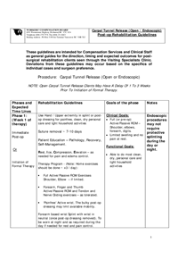 These guidelines are intended for Compensation Services and Clinical Staff as general guides for the direction, timing and expected outcomes for postsurgical rehabilitation clients seen through the Visiting Specialists Clinic. Deviations from these guidelines may occur based on the specifics of individual cases and surgeon preference.