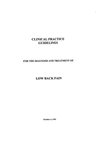 The primary objective of these guidelines is to assist practitioners and patients in clinical decision making by means of recommendations that are based upon best evidence currently available regarding the diagnosis and treatment of acute and chronic low back pain. The intent is to promote effective, efficient, consistent health care provider practices resulting in improved patient outcomes.