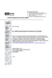 We have once again reviewed the up-to-date literature on CRPS diagnostic criteria. Based on subsequent proceedings and work of others, we continue to feel that our earlier diagnostic criteria for CRPS remain valid and appropriate.
