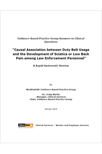 To determine whether there is any evidence to support a causal association between the wearing of a duty belt (belt and holster) and the development of sciatica or low back pain (LBP) among law enforcement personnel.