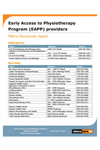 The Early Access to Physiotherapy Program provides workers who have sustained a sprain or strain injury at work with access to a physiotherapist as early as the day of their injury. The program enables employers who have met the requirements of the EAPP to partner with a physiotherapy clinic (or clinics) in their area. The role of the clinic is to assess and treat injured workers who have suffered soft tissue strains and sprains, with the goal of helping workers stay at work and recover on the job.