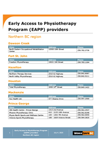 Early access to physiotherapy program providers list