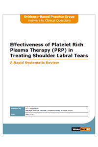 To determine whether there is any evidence on the effectiveness of Platelet Rich Plasma Therapy (PRP) in treating shoulder labral tears.