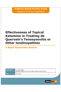 To revisit the topic (the efficacy and/or effectiveness of topical ketamine in treating de Quervain’s tenosynovitis, and more generally in treating tendinopathies) in peer reviewed published literature.