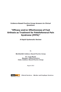 Efficacy and/or Effectiveness of Foot Orthoses as Treatment for Patellofemoral Pain Syndrome (PFPS)