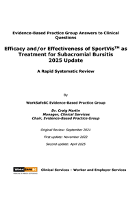 To determine whether there is any evidence to support the efficacy and/or effectiveness of SportVis™ as treatment for subacromial bursitis.