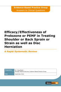 To determine whether there is any evidence on the efficacy/effectiveness of prolozone or PEMF in treating (shoulder or back) sprain or strain as well as on disc herniation.