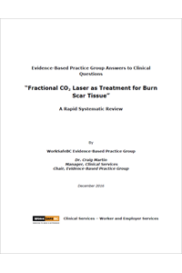 To determine whether there is evidence to support the efficacy and/or effectiveness of Lumenis® Ultrapulse® CO2 SCAAR® (Synergistic Coagulation and Ablation for Advanced Resurfacing) FX®, a fractional CO2 laser, as treatment for burn scar tissue.