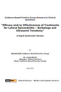 To determine whether there is any evidence to support the efficacy and/or effectiveness of the following two treatment modalities for (refractory) lateral epicondylitis (LE): (1) Barbotage and (2) ultrasonic tenotomy (Tenex procedure).