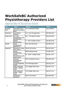 This is a list of musculoskeletal physiotherapy providers who are contracted with WorkSafeBC to provide services to injured workers.