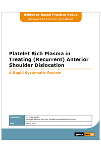 To determine whether there is any evidence on the efficacy and/or effectiveness of platelet rich plasma in treating (recurrent) anterior shoulder dislocation or in Bankart repair.