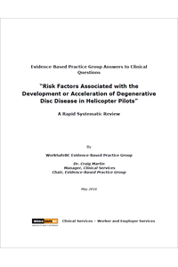 To determine whether there is evidence to support a (causal) association between the development or acceleration of degenerative disc disease (DDD) and work as a helicopter pilot.