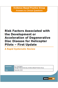 To determine whether there is evidence to support a (causal) association between the development or acceleration of degenerative disc disease (DDD) and work as a helicopter pilot.