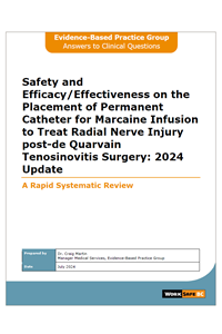 To determine whether there is any evidence on the safety and efficacy/effectiveness on the placement of a permanent catheter for marcaine infusion to treat radial nerve injury post-de Quarvain tenosinovitis surgery.