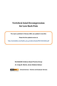 Vertebral axial decompression therapy for low back pain - 2005