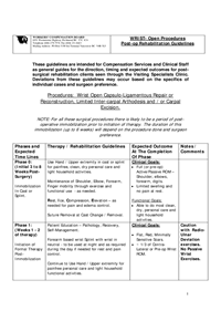 These guidelines are intended for Compensation Services and Clinical Staff as general guides for the direction, timing and expected outcomes for postsurgical rehabilitation clients seen through the Visiting Specialists Clinic. Deviations from these guidelines may occur based on the specifics of individual cases and surgeon preference.