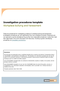 These are sample procedures for dealing with incidents and complaints of workplace bullying and harassment. This template can be adapted to meet the needs of individual workplaces.