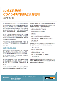 Simplified Chinese translation of Managing the mental health effects of COVID-19 in the workplace: A guide for employers.