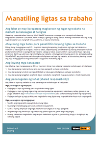 Ibinabalangkas ng patnubay na ito na isinulat para sa mga táong bagong dating sa Canada kung anu-ano ang mga karapatan ng mga manggagawa sa kalusugan at sa kaligtasan. Inilalarawan din nito ang tungkulin ng WorkSafeBC at ang mga hakbang na dapat gawin ng mga manggagawa kung sila’y nasaktan sa trabaho.