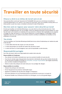 Ce Guide a été rédigé à l’intention des personnes nouvellement arrivées au Canada. Il présente les droits des travailleurs en matière de santé et de sécurité et décrit le rôle de WorkSafeBC ainsi que les mesures que les travailleurs doivent prendre s’ils se blessent au travail.