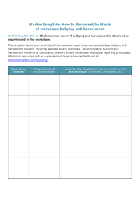 This template is an example of how a worker could document a workplace bullying and harassment incident. It can be adapted to any workplace.
