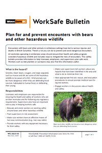 Encounters with bears and other animals in wilderness settings have led to serious injuries and deaths in British Columbia. This bulletin provides information to help you plan safe work in wilderness areas.
