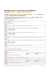 Managing risks in manufacturing workplaces: Assessing risks — Slips, trips, and falls