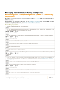 Managing risks in manufacturing workplaces: Evaluating your safety management system — Conducting inspections