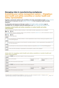 Managing risks in manufacturing workplaces: Evaluating your safety management system — Engaging a joint health and safety committee or worker health and safety representative