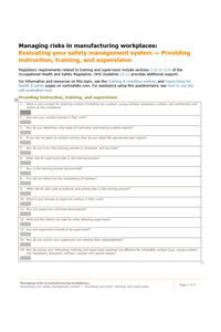 Managing risks in manufacturing workplaces: Evaluating your safety management system — Providing instruction, training, and supervision