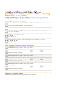 Managing risks in manufacturing workplaces: Evaluating your safety management system — Sustaining effectiveness of the system