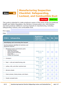 Manufacturing Inspection Checklist: Safeguarding, Lockout, and Combustible Dust