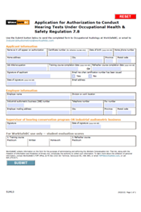 Application for Authorization to Conduct Hearing Tests Under Occupational Health & Safety Regulation 7.8 (Form 51M13)