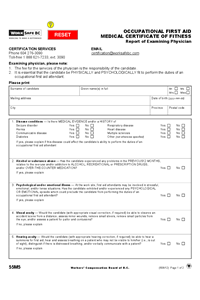 Occupational First Aid Medical Certificate of Fitness: Report of Examining Physician (Form 55M5)