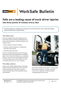 Falls from height are a leading cause of injury for commercial drivers. This bulletin discusses the importance of using three points of contact and other safety tips to help reduce the risk of falls.